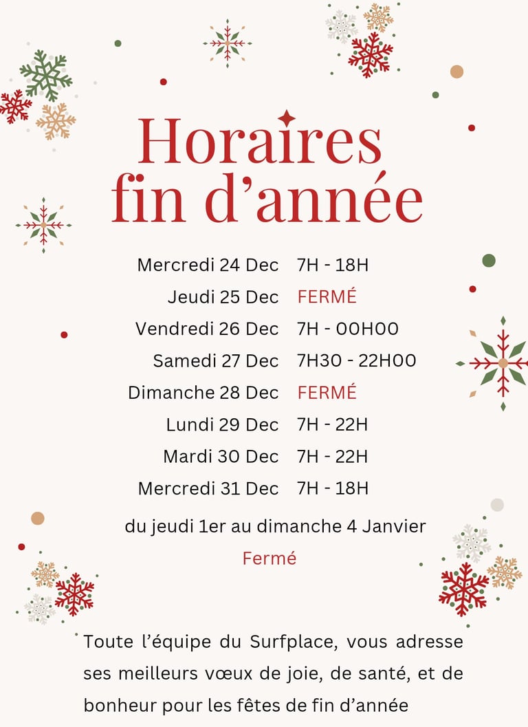Horaires de fin d'année